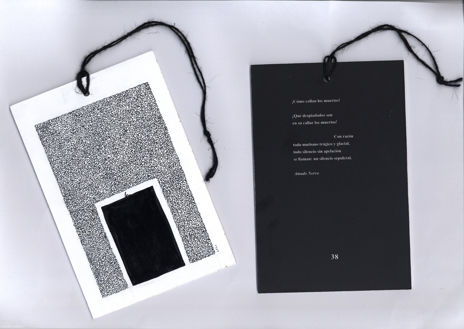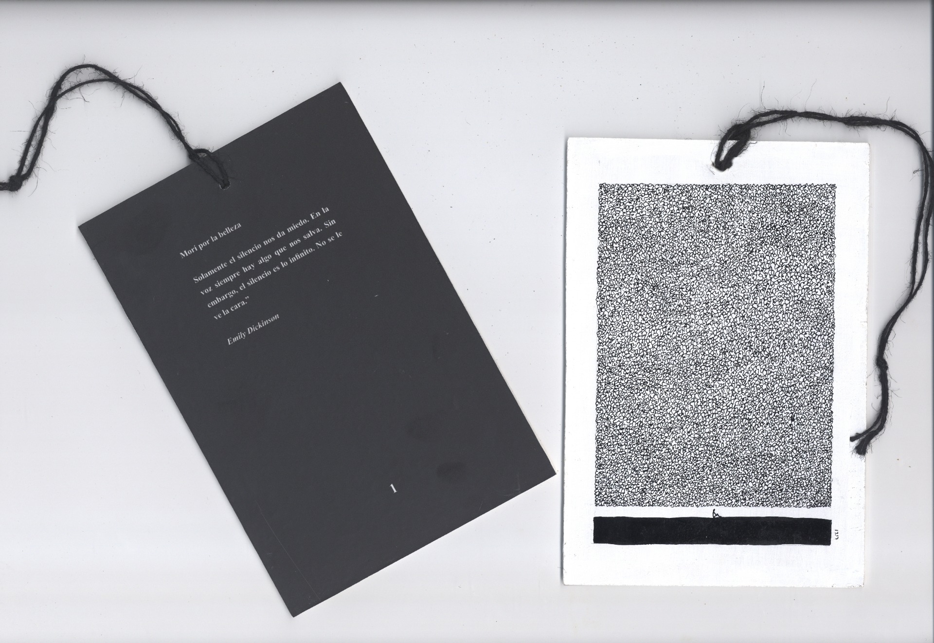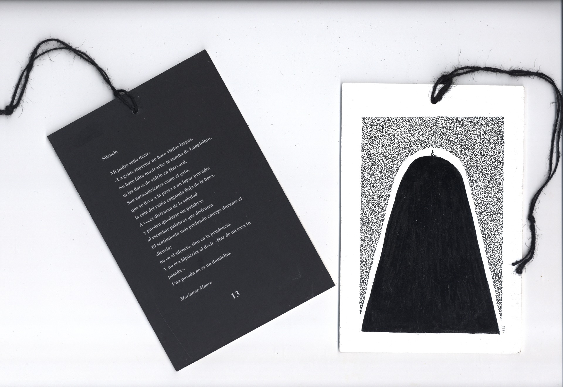 ...Para complementar esta experiencia, he decidido editar un pequeño catálogo que acompañe cada uno de mis dibujos, de manera que, dentro de cada caja de la revista, pueda apreciarse el conjunto de mi proyecto personal y ofrecer al público una mirada integral de la conexión que deseo establecer entre texto e imagen. Durante el proceso, he investigado la obra de 25 poetas mujeres y 25 poetas hombres, recorriendo distintas épocas y geografías, hasta seleccionar aquellos versos que hablan sobre el silencio. Esta búsqueda ha resultado enriquecedora y profundamente estimulante, aportando nuevas dimensiones y sentidos a mi propuesta visual...